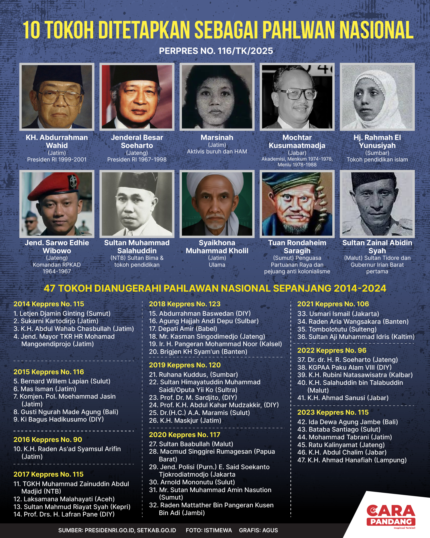 Beranda Infografis 10 Tokoh Ditetapkan sebagai Pahlawan Nasional Infografis 10 Tokoh Ditetapkan sebagai Pahlawan Nasional Penulis Amira Izzati - 11 November 2025 10:18 0 10 Tokoh Ditetapkan sebagai Pahlawan Nasional Tags Berita Sebelumnya Denmark Berencana Larang Anak di Bawah 15 Tahun Gunakan Media Sosial Berita Berikutnya Dokumen Pergeseran Anggaran PUPRPKPP Riau Disita KPK LEAVE A REPLY Cancel reply Comment: Please enter your comment! Name:* Please enter your name here Email:* You have entered an incorrect email address! Please enter your email address here Website: Save my name, email, and website in this browser for the next time I comment. Berita Teratas Enam Agenda Utama, 28 Pembicara Dalam dan Luar Negeri Akan Warnai Konferensi Wakaf Internasional di Sumatera Barat Bukti Peduli Pendidikan, Gubernur Mahyeldi Tambahkan Ruang Kelas Baru Untuk SMAKPA Padang Gubernur Mahyeldi Apresiasi Museum Adityawarman Raih Penghargaan Nasional Gubernur Mahyeldi Terima Audiensi BPS Sumbar Bahas Pertumbuhan Ekonomi Parade Onthel Payakumbuh 2025 Hidupkan Nuansa Tempo Dulu, Ratusan Onthelis Padati Kota Randang Berita Terkait Berita Terkait