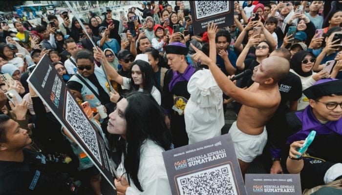 Boris Bokir melengkapi aksi tersebut dengan kostum kuntilanak khas film mereka. Penampilan unik ini membuat suasana CFD semakin ramai dan penuh hiburan.