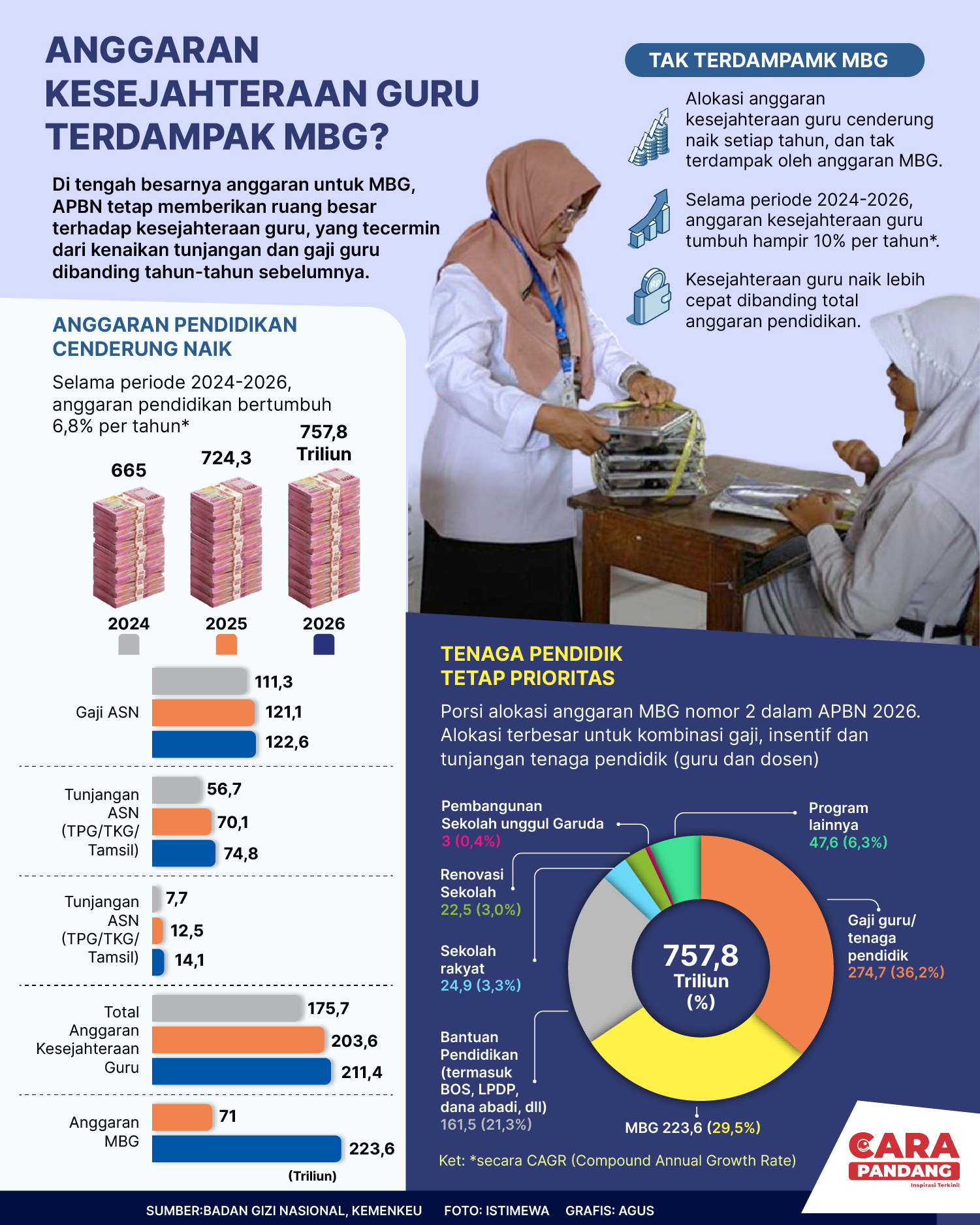 Beranda Infografis Anggaran Kesejahteraan Guru Terdampak MBG? Infografis Anggaran Kesejahteraan Guru Terdampak MBG? Penulis Amira Izzati - 31 Januari 2026 23:16 0 Anggaran Kesejahteraan Guru Terdampak MBG? Tags Berita Sebelumnya WHO Sebut 2 Kasus Virus Nipah Dilaporkan di India LEAVE A REPLY Cancel reply Comment: Please enter your comment! Name:* Please enter your name here Email:* You have entered an incorrect email address! Please enter your email address here Website: Save my name, email, and website in this browser for the next time I comment. Berita Teratas Melalui Momentum Peringatan Hari Gizi Nasional ke-66, Gubernur Mahyeldi Ajak Masyarakat Lebih Peduli Gizi Seimbang Pemko Payakumbuh Raih UHC Awards 2026 Kategori Madya, Komitmen Lindungi Kesehatan Masyarakat Pemprov Sumbar Fasilitasi Penyelesaian Konflik antara Masyarakat di Kabupaten Dharmasraya dan PT. Tidar Kerinci Agung Pemkab Solok Audiensi dengan Pemprov Sumbar Bahas Pengelolaan TPA Regional dan Solusi Jangka Panjang Persampahan Penanganan Ruas Jalan Malalak, Menteri PU Siapkan Jembatan Permanen dan Sabo Dam Berita Terkait Berita Terkait