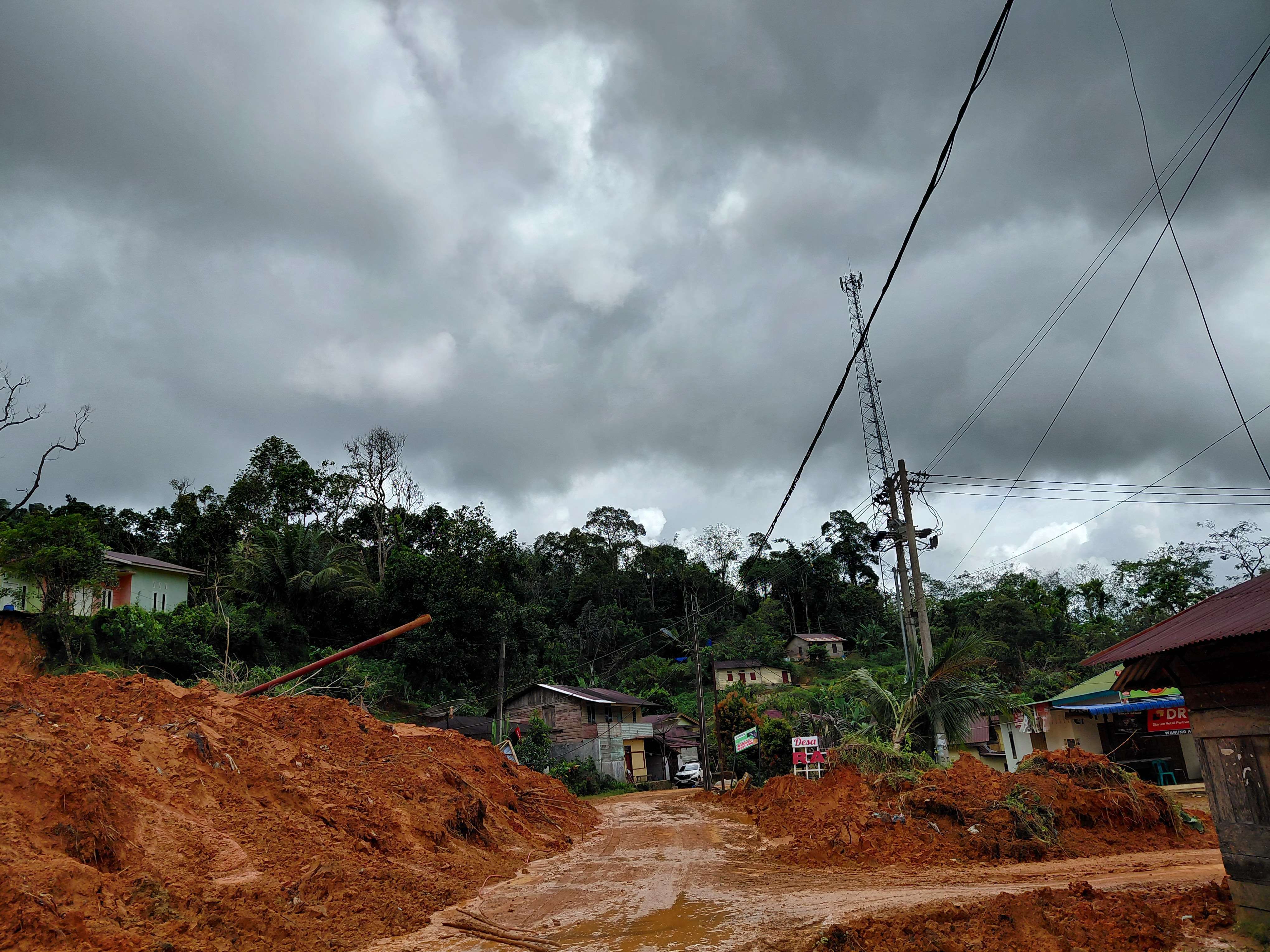 Para siswa terpaksa belajar dari rumah akibat akses sekolah terputus. Jalan menuju sekolah tidak bisa dilintasi karena material longsor.