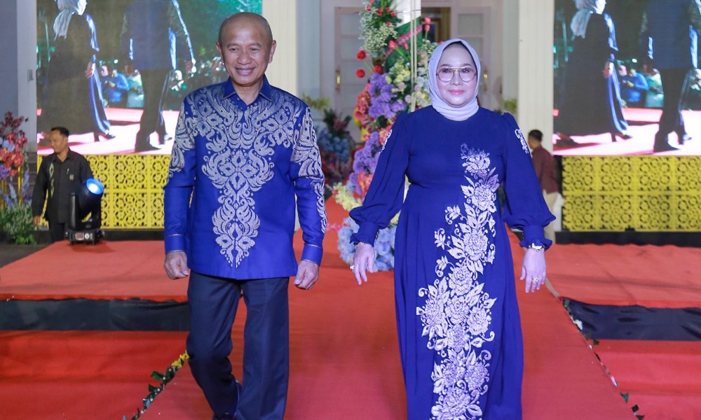 POHUWATO, CARAPANDANG.COM - Bupati Pohuwato, Saipul A. Mbuinga bersama Ketua Dekranasda Kabupaten Pohuwato, Selvi Mbuinga Monoarfa menghadiri malam puncak peringatan Hari Karawo di halaman rumah jabatan Gubernur Gorontalo, Selasa (23/01/2024).