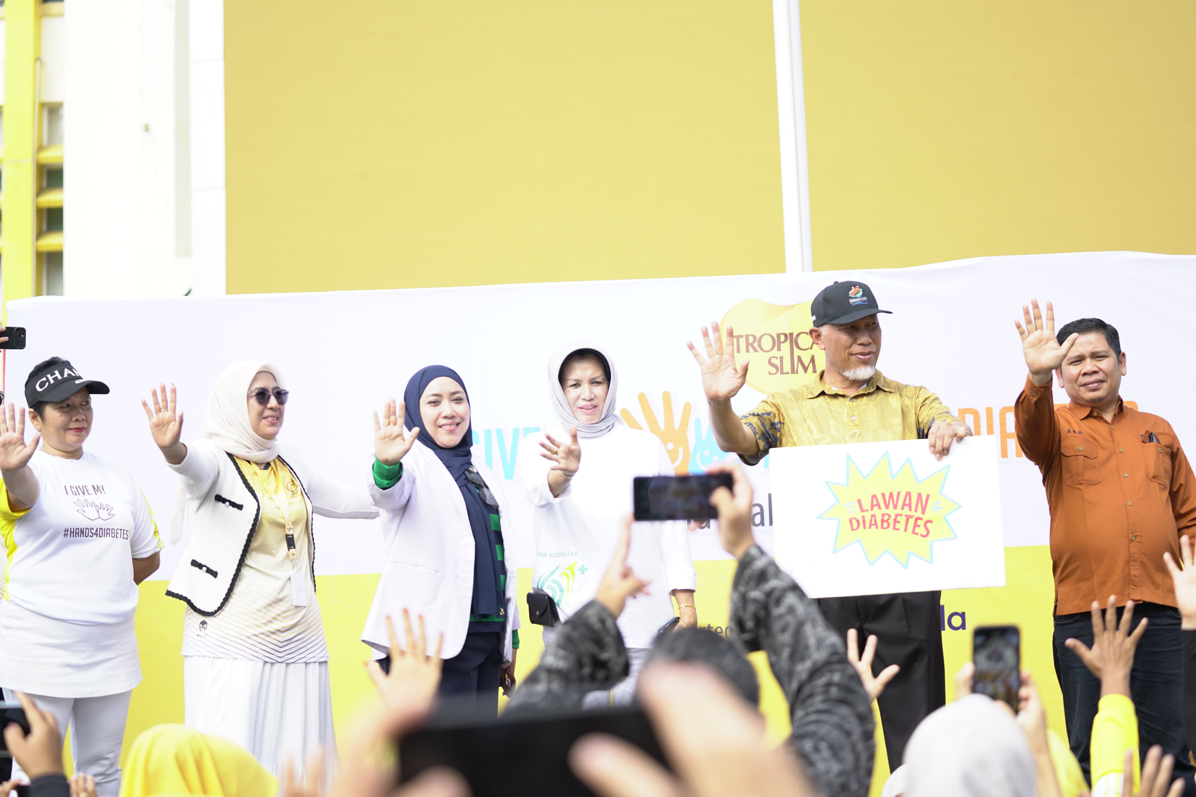 SUMBAR, CARAPANDANG - Gubernur Sumatera Barat, Mahyeldi Ansharullah, membuka kegiatan Senam Sehat dalam rangka World Diabetes Day 2025 di halaman Kantor Gubernur Sumbar, Minggu (16/11/2025). Acara bertema I Give My HANDS4DIABETES yang digelar Tropicana Slim ini menjadi bagian dari kampanye nasional untuk mengajak masyarakat lebih peduli pada kesehatan dan pencegahan diabetes sejak dini.