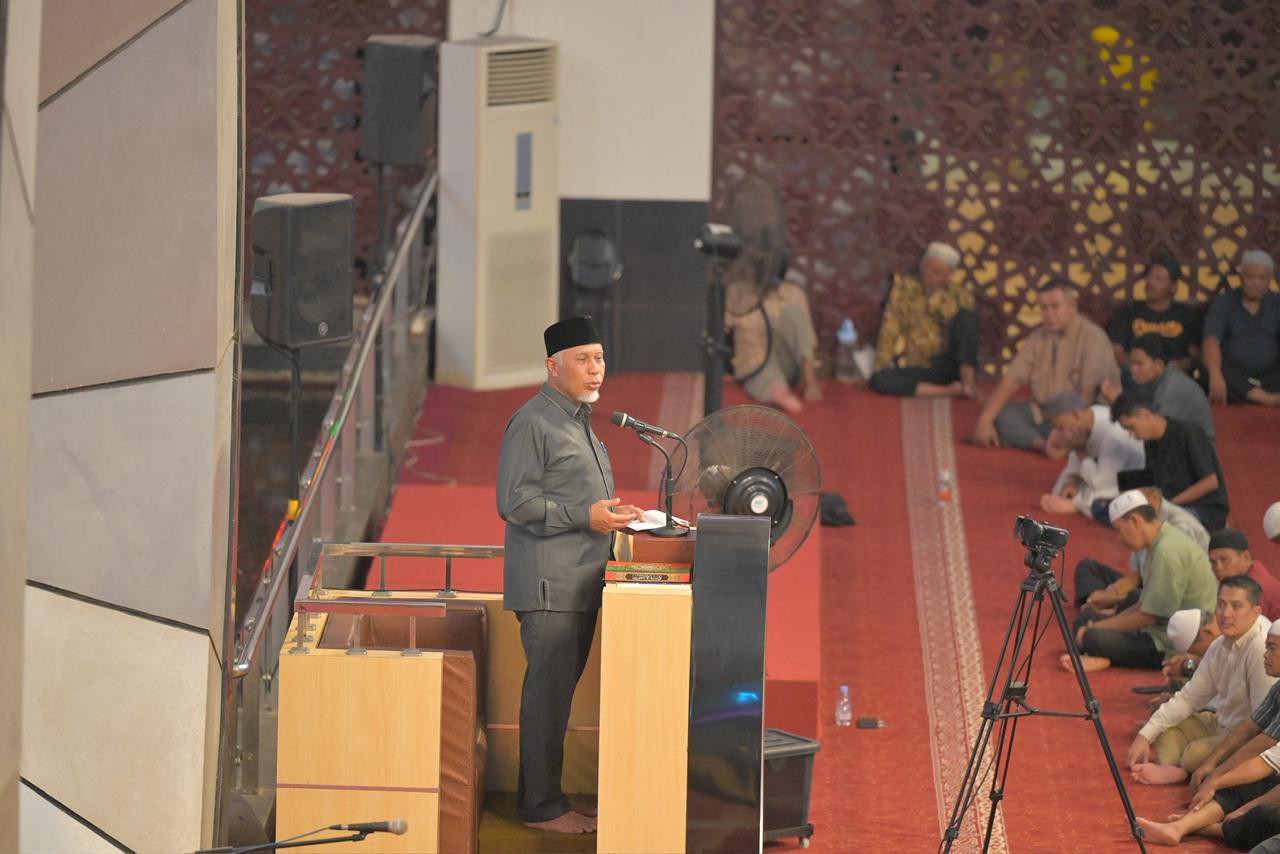 SUMBAR, CARAPANDANG - Memasuki malam kedua Ramadan 1447 Hijriah, Gubernur Sumatera Barat (Sumbar), Mahyeldi Ansharullah mengisi ceramah agama di Masjid Raya Syekh Ahmad Khatib Al Minangkabawi, Kamis malam (19/02/2026). Dalam tausiah tersebut, Gubernur mengangkat tema keutamaan Ramadan sebagai momentum pembentukan pribadi dan masyarakat yang bertakwa.