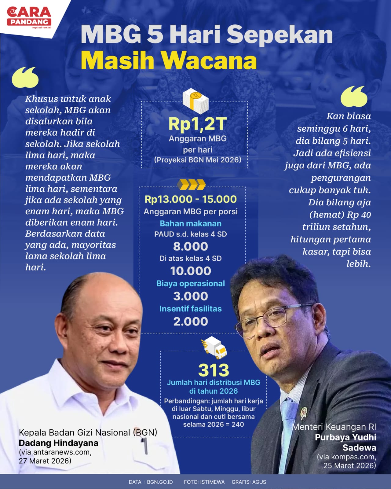 Beranda Infografis MBG 5 Hari Sepekan Masih Wacana Infografis MBG 5 Hari Sepekan Masih Wacana Penulis Amira Izzati - 30 Maret 2026 11:49 0 MBG 5 Hari Sepekan Masih Wacana Tags Berita Sebelumnya Presiden Ingin Semua Kendaraan Dikonversi ke Listrik Berita Berikutnya Di Kritik Paus Leo XIV, Trump Posting Surat Franklin Graham LEAVE A REPLY Cancel reply Comment: Please enter your comment! Name:* Please enter your name here Email:* You have entered an incorrect email address! Please enter your email address here Website: Save my name, email, and website in this browser for the next time I comment. Berita Teratas Gubernur Mahyeldi Dorong UMKM Go Digital untuk Perluas Pasar Tinjau Pasar Ateh Bukittinggi Saat Puncak Libur Lebaran, Gubernur Mahyeldi Tekankan Hospitality dan Kebersihan Kawasan Wisata Tinjau Posko Lebaran dan Terminal, Gubernur Ingin Pastikan Pelayanan Berjalan Optimal Pemko Payakumbuh Perkuat Pengelolaan TKD untuk Mitigasi Bencana Pemko Payakumbuh Serahkan LKPD 2025 ke BPK Sumbar, Wali Kota Tegaskan Komitmen Transparansi Berita Terkait Berita Terkait