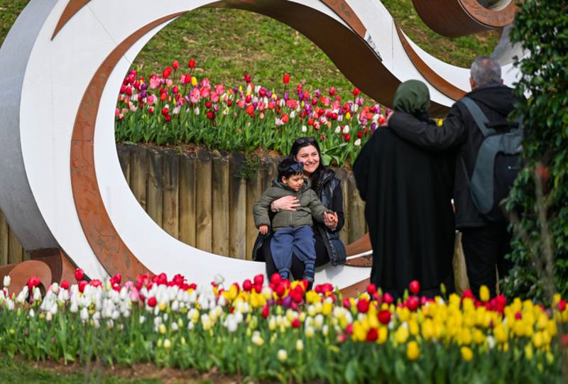 Foto yang diabadikan pada 11 April 2026 ini menunjukkan bunga tulip di Taman Emirgan di Istanbul, Turkiye. (Carapandang/Xinhua/Liu Lei)