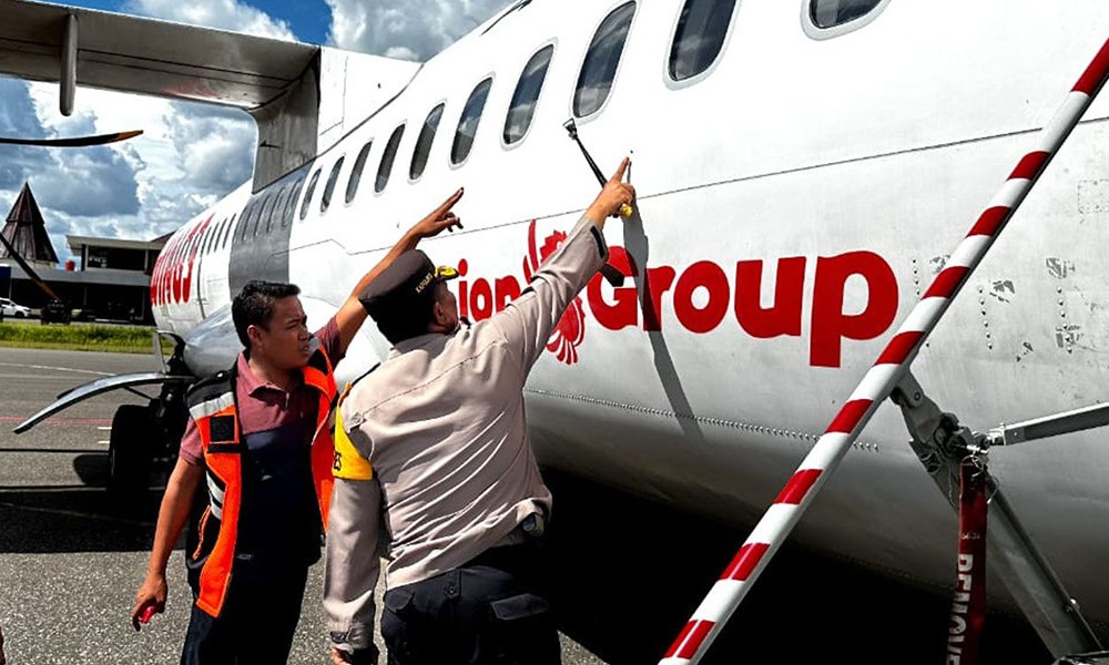 Insiden penembakan yang terjadi pada Sabtu siang sekitar pukul 13.20 WIT itu mengakibatkan peluru tembus ke dalam badan pesawat.