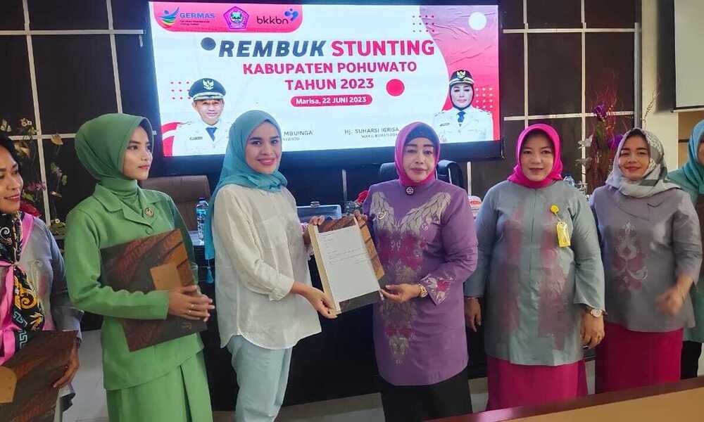 Rembuk stunting yang berlangsung di ruang pola kantor bupati dihadiri Wakil Bupati, Suharsi Igirisa dan diikuti Ketua-Ketua Organisasi Perempuan se-Kabupaten Pohuwato, Baznas Pohuwato, Tim Pendamping BPS, Asisten dan Pimpinan OPD di lingkungan Pemda Kabupaten Pohuwato serta camat dan Kepala Puskesmas se-Kabupaten Pohuwato, Kamis, (22/6/2023).
