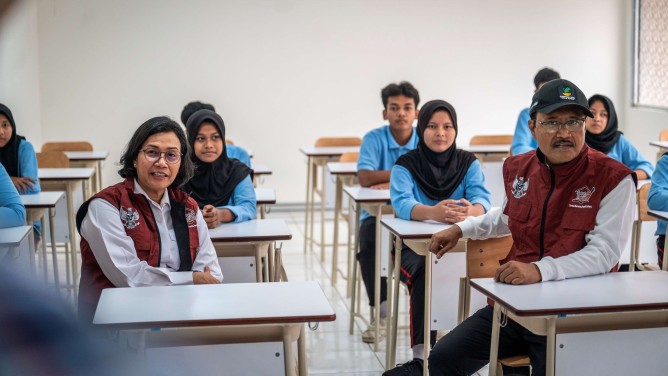"Fasilitas yang dibiayai anggaran ini termasuk operasional, gaji guru, pembangunan infrastruktur, hingga penyediaan laptop untuk siswa," kata Sri Mulyani.