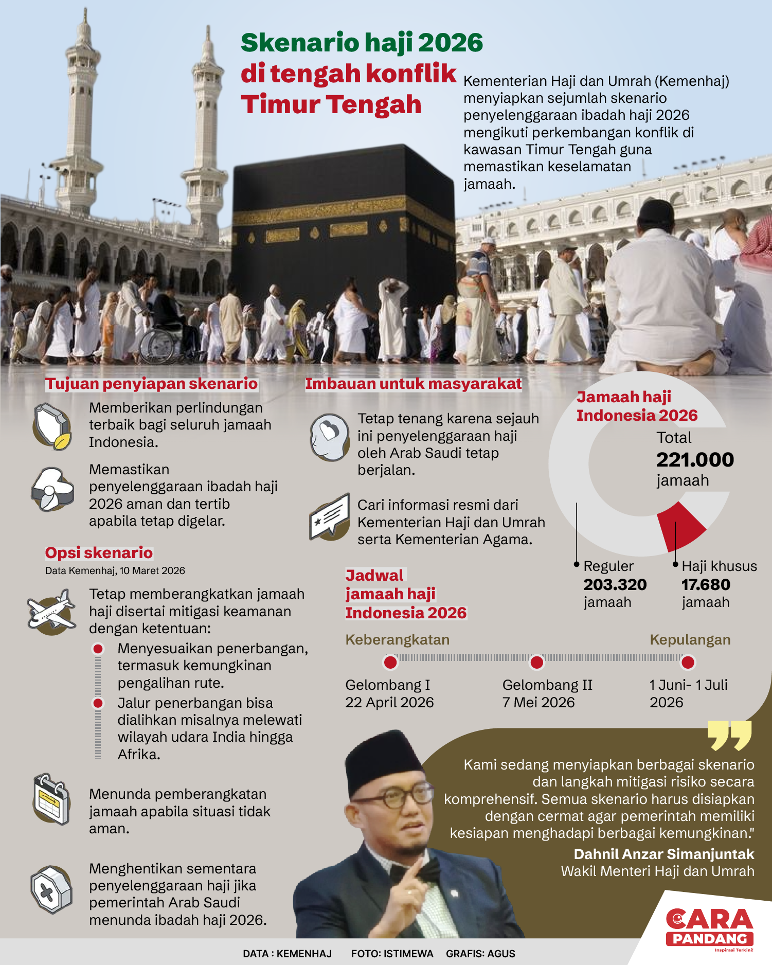 Beranda Infografis Skenario Haji 2026 di Tengah Konflik Timur Tengah Infografis Skenario Haji 2026 di Tengah Konflik Timur Tengah Penulis Amira Izzati - 16 Maret 2026 10:43 0 Skenario Haji 2026 di Tengah Konflik Timur Tengah Tags Berita Sebelumnya MU Trus Raih Kemenangan Usai Kalahkan Aston Villa 3-1 Berita Berikutnya Muhasabah Diri Sendiri LEAVE A REPLY Cancel reply Comment: Please enter your comment! Name:* Please enter your name here Email:* You have entered an incorrect email address! Please enter your email address here Website: Save my name, email, and website in this browser for the next time I comment. Berita Teratas Sahur Bersama Warga, Gubernur Mahyeldi Serahkan Bantuan Bedah Rumah untuk Keluarga Kurang Mampu di Pasaman Buka Puasa Bersama Niniak Mamak dan Bundo Kanduang, Wako Zulmaeta Paparkan Arah Pembangunan Payakumbuh Pemko Payakumbuh Resmikan Masjid Ramah Pemudik 1447 H di Masjid Musafir Kubu Gadang Wagub Vasko Safari Ramadan di Muaro Kalaban, Tegaskan Dukungan untuk Pembangunan Sawahlunto Gubernur Mahyeldi Serahkan Proposal Pembangunan Pusat Kebudayaan Sumbar Rp382,65 Miliar kepada Menteri Kebudayaan Berita Terkait Berita Terkait
