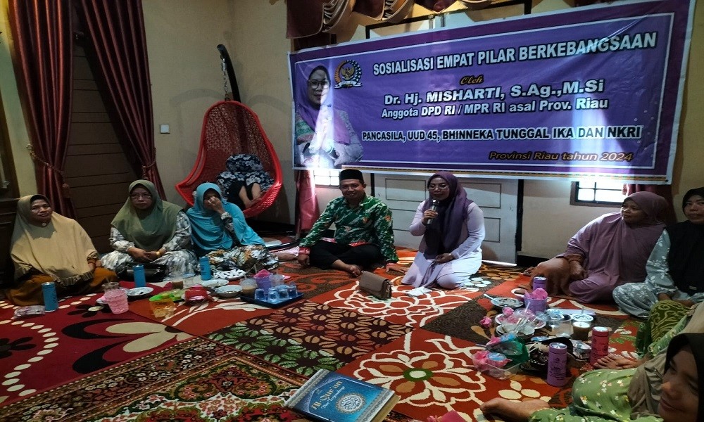 CARAPANDANG - Anggota MPR RI, Dr. Hj. Misharti menggelar kegiatan Sosialisasi Empat Pilar MPR di Dusun Koto Simpang, Desa Koto Baru, Kecematan Singingi Hilir, Kab. Kuantan Singingi, Provinsi Riau pada Minggu, 21 Januari 2024.