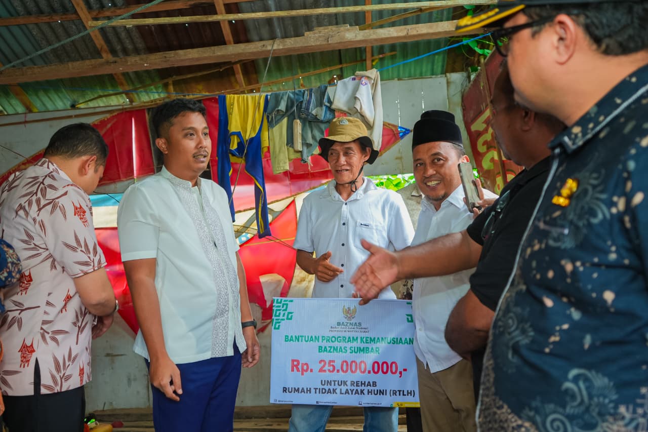 Melalui Baznas Provinsi Sumbar, disalurkan bantuan sebesar Rp25 juta untuk perbaikan rumah, disertai beberapa paket sembako untuk kebutuhan sehari-hari.