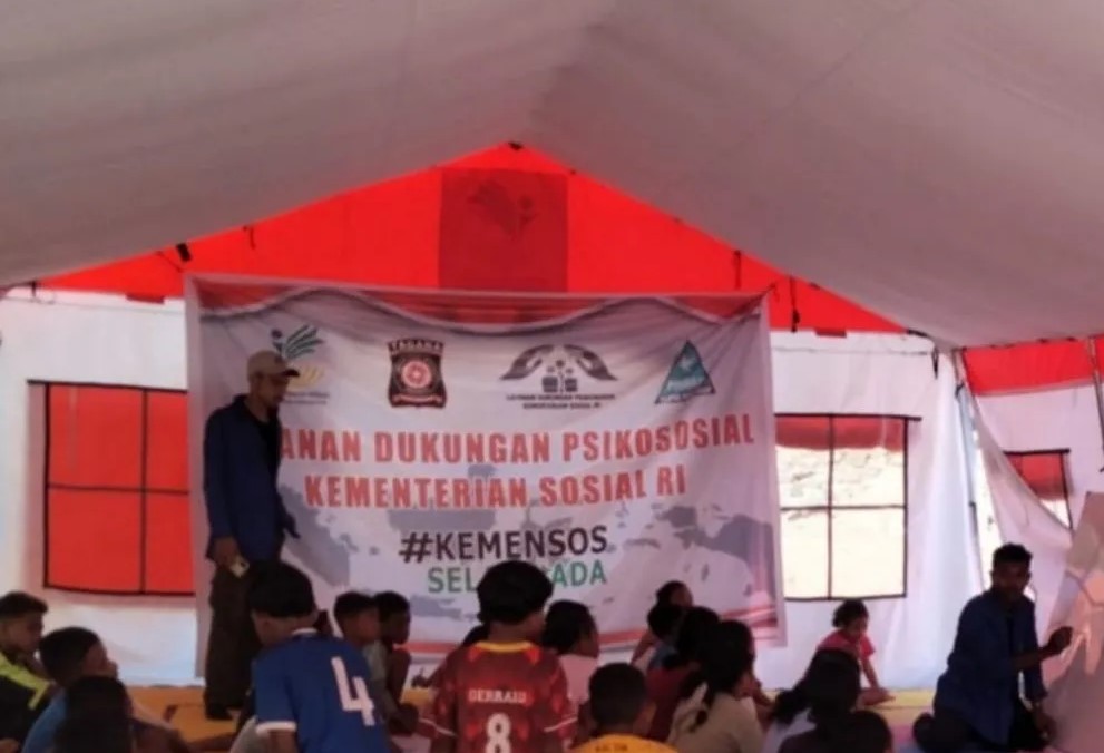 Sekolah darurat Kementerian Sosial tersebut salah satunya berlokasi di Desa Konga, Kecamatan Titehena, Flores Timur. Satu dari 14 desa yang terdampak langsung oleh lontaran material vulkanik erupsi Gunung Lewotobi Laki-Laki pada 4 November 2024.