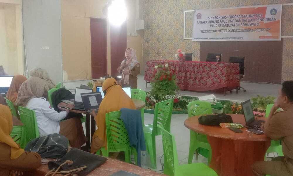 POHUWATO, CARAPANDANG.COM - Sebanyak 243 lembaga PAUD di Kabupaten Pohuwato mengikuti Sinkronisasi Program Tahun 2024 bersama Bidang PAUD dan PNF Dinas Pendidikan dan Kebudayaan Kabupaten Pohuwato.