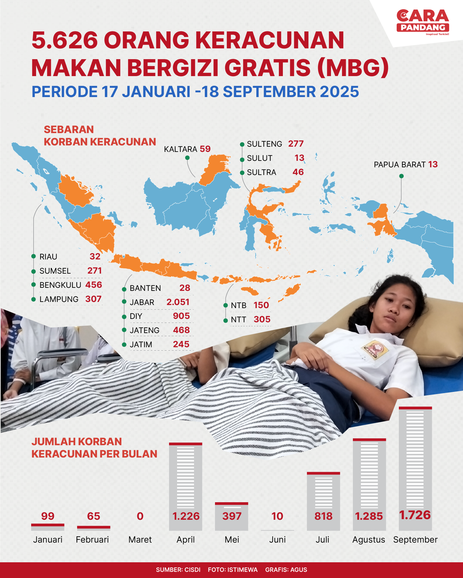 Beranda Infografis 5.626 Orang Keracunan MBG Infografis 5.626 Orang Keracunan MBG Penulis Amira Izzati - 26 September 2025 09:28 0 5.626 Orang Keracunan MBG Tags Berita Sebelumnya Kemendikdasmen Luncurkan Panduan STEM Berita Berikutnya Para Tahanan Pro-Palestina yang Mogok Makan di Inggris Hadapi Risiko Kematian LEAVE A REPLY Cancel reply Comment: Please enter your comment! Name:* Please enter your name here Email:* You have entered an incorrect email address! Please enter your email address here Website: Save my name, email, and website in this browser for the next time I comment. Berita Teratas Pemimpin Thailand dan Kamboja Berbicara via Telepon dengan Trump, Bahas Konflik Perbatasan Potret Timur Tengah: Badai Musim Dingin Tewaskan Setidaknya 14 Orang di Gaza yang Porak-Poranda akibat Perang Program Edukasi Bermain Bantu Anak Atasi Kecemasan Saat MRI Gie, Prabowo Presiden Sekarang Masakan Italia Diakui sebagai Warisan Budaya Takbenda UNESCO Berita Terkait Berita Terkait Distribusi Bantuan Banjir Sumatra Lewat Udara Maliq - 06 Desember 2025 14:16 Dampak Banjir Aceh, Sumut dan Sumbar Zoel Rachman - 05 Desember 2025 08:47 Daftar Dosa Korupsi Netanyahu Zoel Rachman - 04 Desember 2025 12:52 Kutipan Pidato Hari Guru Nasional 2025 Maliq - 28 November 2025 12:12