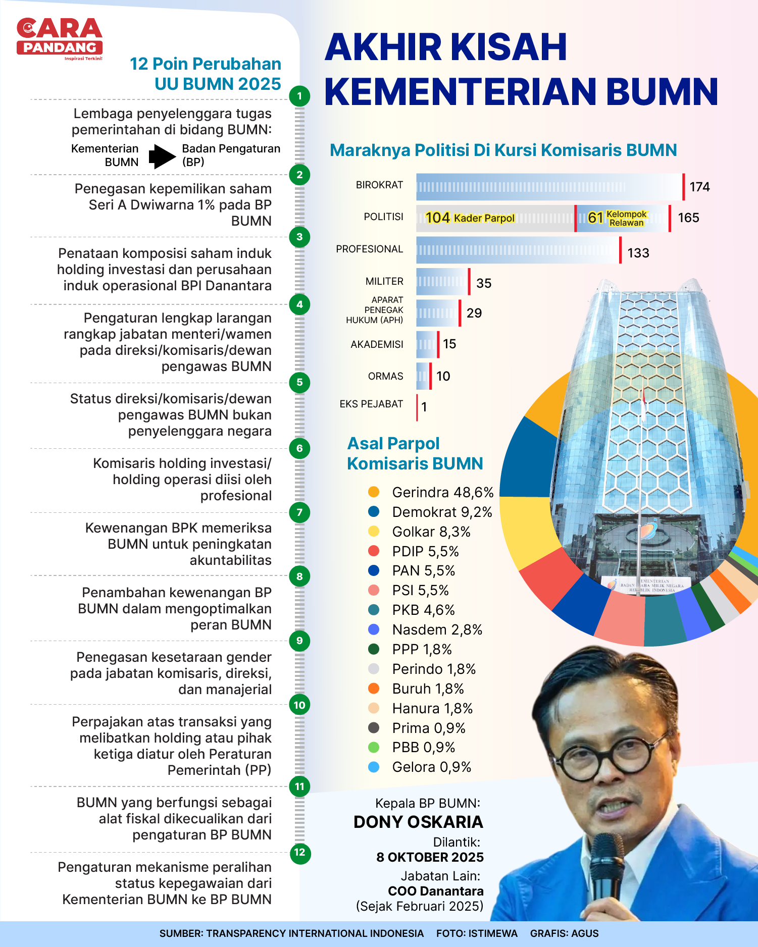 Beranda Infografis Akhir Kisah Kementerian BUMN Infografis Akhir Kisah Kementerian BUMN Penulis Amira Izzati - 13 Oktober 2025 12:48 0 Akhir Kisah Kementerian BUMN Tags Berita Sebelumnya Polisi Tangkap Pelaku Pengeroyokan Ojol di Jakut Berita Berikutnya Para Tahanan Pro-Palestina yang Mogok Makan di Inggris Hadapi Risiko Kematian LEAVE A REPLY Cancel reply Comment: Please enter your comment! Name:* Please enter your name here Email:* You have entered an incorrect email address! Please enter your email address here Website: Save my name, email, and website in this browser for the next time I comment. Berita Teratas Pemimpin Thailand dan Kamboja Berbicara via Telepon dengan Trump, Bahas Konflik Perbatasan Potret Timur Tengah: Badai Musim Dingin Tewaskan Setidaknya 14 Orang di Gaza yang Porak-Poranda akibat Perang Program Edukasi Bermain Bantu Anak Atasi Kecemasan Saat MRI Gie, Prabowo Presiden Sekarang Masakan Italia Diakui sebagai Warisan Budaya Takbenda UNESCO Berita Terkait Berita Terkait Distribusi Bantuan Banjir Sumatra Lewat Udara Maliq - 06 Desember 2025 14:16 Dampak Banjir Aceh, Sumut dan Sumbar Zoel Rachman - 05 Desember 2025 08:47 Daftar Dosa Korupsi Netanyahu Zoel Rachman - 04 Desember 2025 12:52 Kutipan Pidato Hari Guru Nasional 2025 Maliq - 28 November 2025 12:12