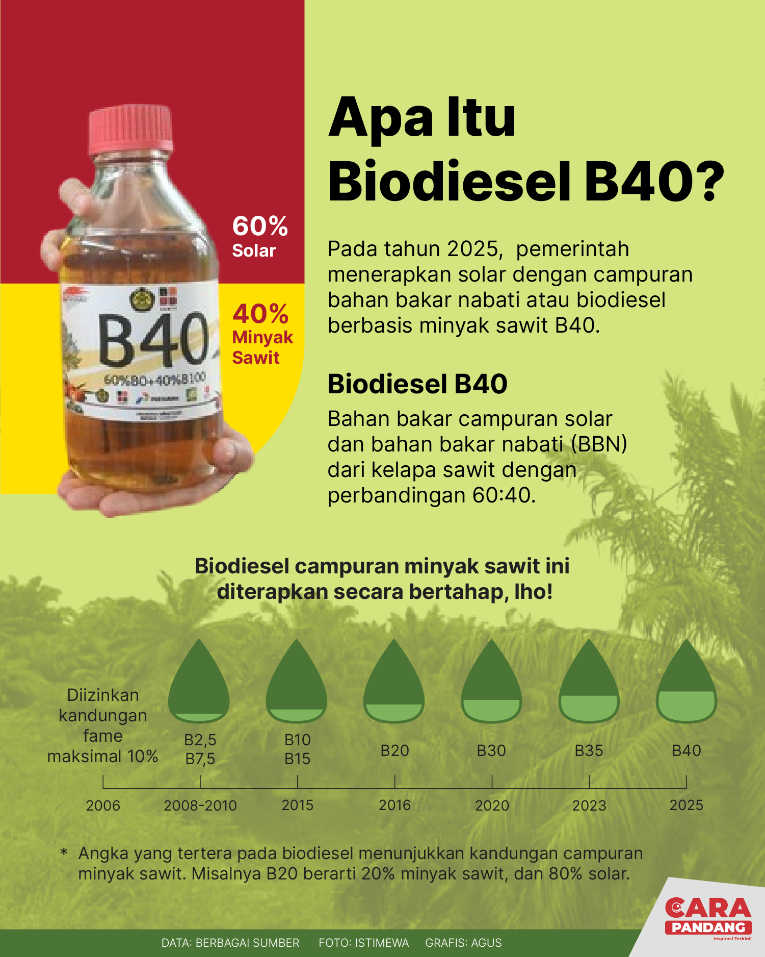 Beranda Infografis Apa itu Biodiesel B40? Infografis Apa itu Biodiesel B40? Penulis Amira Izzati - 13 Februari 2025 20:46 0 CARAPANDANG - 2025, Pemerintah menerapkan solar dengan campuran bahan bakar nabati atau biodiesel berbasis B40. Tags Berita Sebelumnya Prabowo Ditunjuk Kembali Jadi Ketua Umum Gerindra Berita Berikutnya TNI AU Kerahkan A400M untuk Antar Logistik ke Lokasi Bencana Aceh LEAVE A REPLY Cancel reply Comment: Please enter your comment! Name:* Please enter your name here Email:* You have entered an incorrect email address! Please enter your email address here Website: Save my name, email, and website in this browser for the next time I comment. Berita Teratas Pemimpin Thailand dan Kamboja Berbicara via Telepon dengan Trump, Bahas Konflik Perbatasan Potret Timur Tengah: Badai Musim Dingin Tewaskan Setidaknya 14 Orang di Gaza yang Porak-Poranda akibat Perang Program Edukasi Bermain Bantu Anak Atasi Kecemasan Saat MRI Maruarar Sirait: Kita Samakan Data, Baru Relokasi Dan Bangun Rumah Korban Banjir Sumatera Gie, Prabowo Presiden Sekarang Berita Terkait Berita Terkait Distribusi Bantuan Banjir Sumatra Lewat Udara Maliq - 06 Desember 2025 14:16 Dampak Banjir Aceh, Sumut dan Sumbar Zoel Rachman - 05 Desember 2025 08:47 Daftar Dosa Korupsi Netanyahu Zoel Rachman - 04 Desember 2025 12:52 Kutipan Pidato Hari Guru Nasional 2025 Maliq - 28 November 2025 12:12
