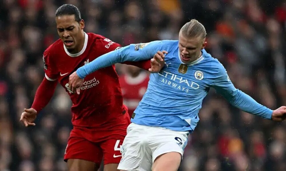 Bermain di Anfield, tim tamu unggul duluan di menit 23 lewat sebuah skema sepak pojok cerdik, yang diselesaikan dengan ciamik oleh John Stones. Kevin De Bruyne melepaskan crossing rendah ke tiang dekat, di mana Nathan Ake memblokir pergerakan Alexis Mac Allister untuk memungkinkan Stones menyelinap ke depan gawang dan menceploskan bola melewati Caoimhin Kelleher.