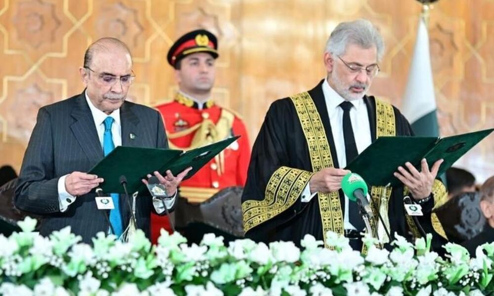 Kepala Pengadilan Pakistan Qazi Faez Isa membacakan sumpah jabatan kepada presiden yang baru saja terpilih tersebut dalam upacara yang dihadiri oleh presiden Pakistan yang baru saja menyelesaikan masa jabatannya Arif Alvi, Perdana Menteri Pakistan Shahbaz Sharif, para pemimpin angkatan bersenjata, politisi, dan pejabat asing.