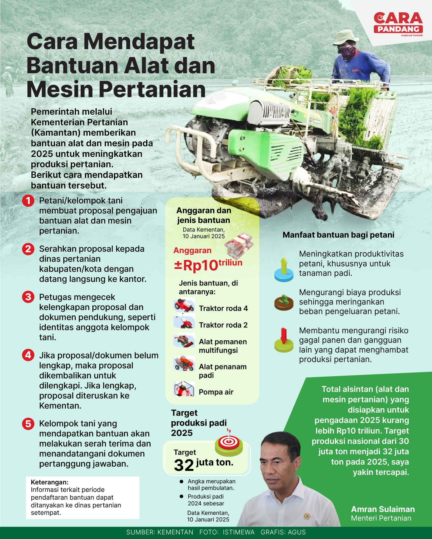 Beranda Infografis Bantuan Alat dan Mesin Pertanian Infografis Bantuan Alat dan Mesin Pertanian Penulis Amira Izzati - 13 Januari 2025 21:14 0 CARAPANDANG - Bantuan Alat dan Mesin Pertanian Tags Berita Sebelumnya Gubernur Mahyeldi dan Kapolda Sumbar Bahas Intensif Upaya Penguatan Sinergi untuk Keamanan dan Pembangunan Daerah Berita Berikutnya Presiden Prabowo Lantik Tujuh Anggota KY Periode 2025-2030 LEAVE A REPLY Cancel reply Comment: Please enter your comment! Name:* Please enter your name here Email:* You have entered an incorrect email address! Please enter your email address here Website: Save my name, email, and website in this browser for the next time I comment. Berita Teratas Pemimpin Thailand dan Kamboja Berbicara via Telepon dengan Trump, Bahas Konflik Perbatasan Potret Timur Tengah: Badai Musim Dingin Tewaskan Setidaknya 14 Orang di Gaza yang Porak-Poranda akibat Perang Program Edukasi Bermain Bantu Anak Atasi Kecemasan Saat MRI Gie, Prabowo Presiden Sekarang Masakan Italia Diakui sebagai Warisan Budaya Takbenda UNESCO Berita Terkait Berita Terkait Distribusi Bantuan Banjir Sumatra Lewat Udara Maliq - 06 Desember 2025 14:16 Dampak Banjir Aceh, Sumut dan Sumbar Zoel Rachman - 05 Desember 2025 08:47 Daftar Dosa Korupsi Netanyahu Zoel Rachman - 04 Desember 2025 12:52 Kutipan Pidato Hari Guru Nasional 2025 Maliq - 28 November 2025 12:12