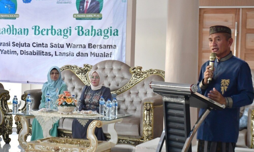 POHUWATO, CARAPANDANG - Pentasyarufan Zakat Mall Hak Ashnaf Mualaf dalam Acara Ramadan Berbagi Bahagia, Kerja Sama Baznas Provinsi Gorontalo, Tim Penggerak PKK Provinsi Gorontalo, Tim Penggerak PKK Kabupaten Pohuwato, dan Baznas Kabupaten Pohuwato berlangsung di rumah jabatan Bupati Pohuwato, Kamis, (04/04/2024).