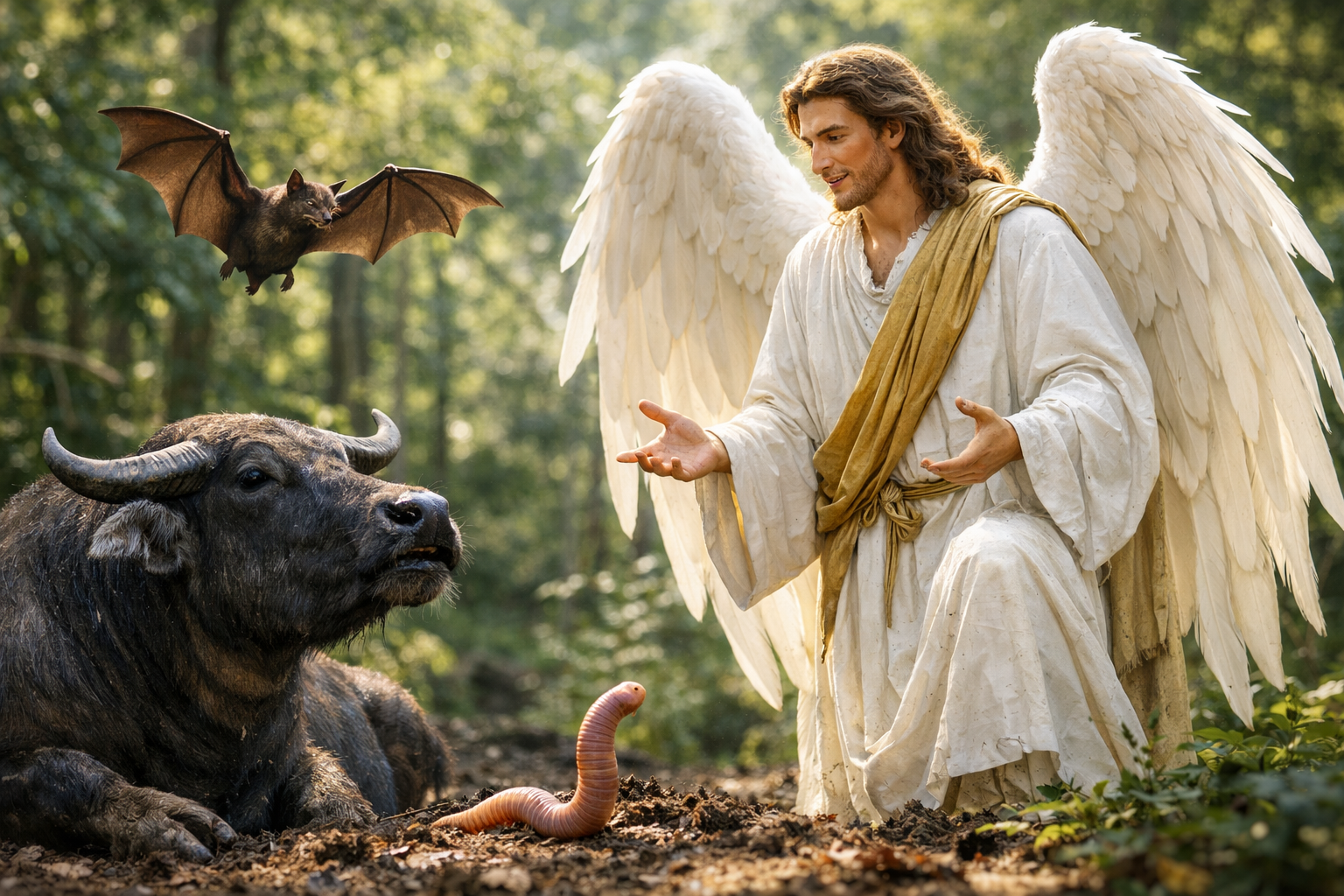 CARAPANDANG.COM - Suatu hari, Allah SWT memerintahkan Malaikat Jibril pergi menemui salah satu makhluk-Nya.Terjadi dialog antara jibril dan kerbau, kelelawar, lalu cacing. Jawaban cacing sungguh mengejutkan. Pertama kali yang didatangi adalah kerbau. Di siang yang panas itu si kerbau sedang berendam di sungai.