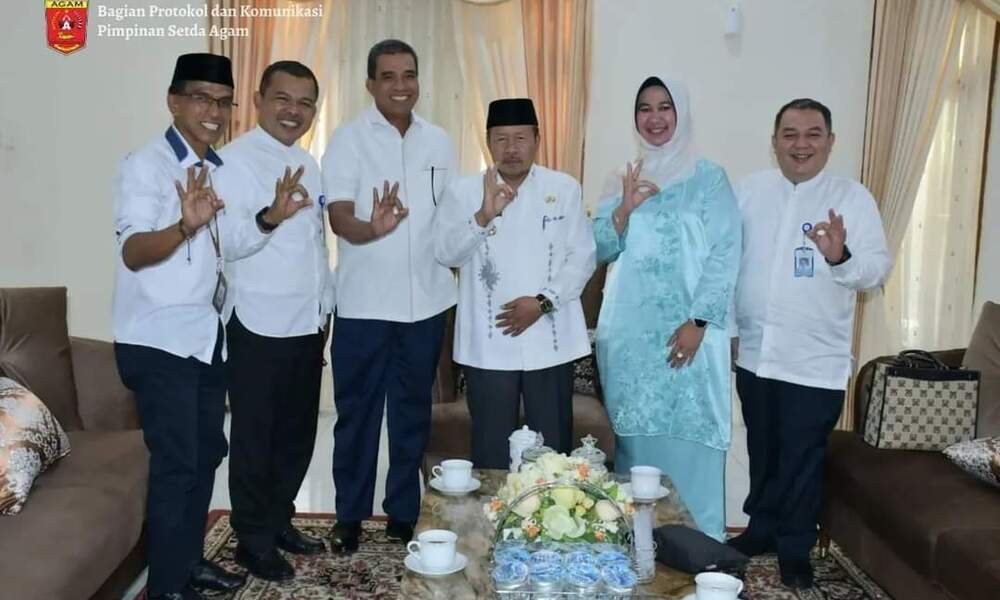 AGAM, CARAPANDANG.COM - Direksi Bank Nagari Pusat melakukan pertemuan dengan Bupati Agam, Dr H Andri Warman, di Mess Pemkab Agam Belakang Balok, Jum'at (4/8).