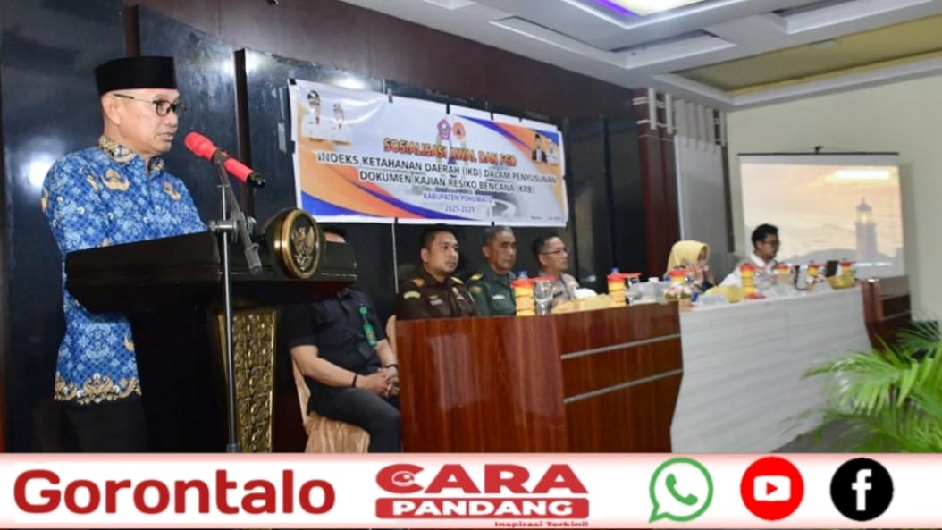 POHUWATO, CARAPANDANG - Sebagai dasar dalam penyusunan perencanaan dan kebijakan daerah dalam, khususnya berkaitan dengan kawasan-kawasan yang menjadi prioritas penanganan bencana. Maka Badan Penanggulangan Bencana Daerah (BPBD) Kabupaten Pohuwato menggelar sosialisasi awal dan FGD indeks ketahanan daerah (IKD) dalam penyusunan kajian risiko bencana Kabupaten Pohuwato tahun 2025-2029.