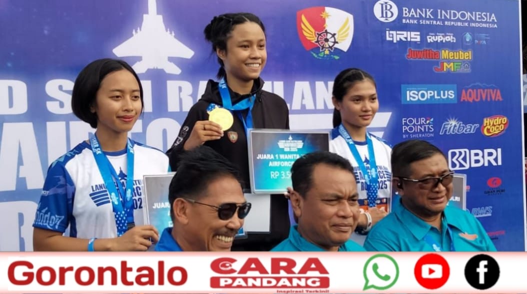 POHUWATO, CARAPANDANG - Prestasi membanggakan kembali ditorehkan oleh personel Polda Gorontalo. Bripda Navesha Hiola, anggota Dit Samapta Polda Gorontalo, berhasil meraih Juara 1 dalam kategori TNI/Polri Runner Putri pada ajang Air Force Run yang digelar di Lanud Sam Ratulangi, Manado, Sulawesi Utara, Sabtu (19/07).