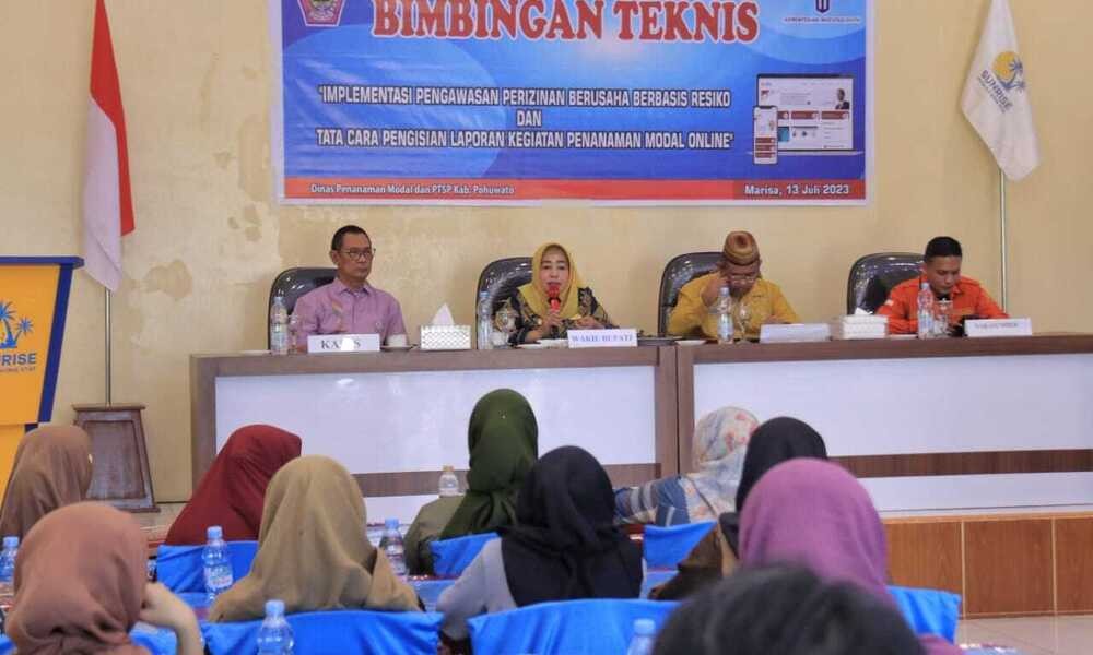 POHUWATO, CARAPANDANG.COM - Bimbingan teknis tentang implementasi pengawasan perizinan berusaha berbasis resiko dan tata cara pengisian laporan kegiatan penanaman modal online dibuka Wakil Bupati Pohuwato, Suharsi Igirisa, Kamis, (13/7/2023).