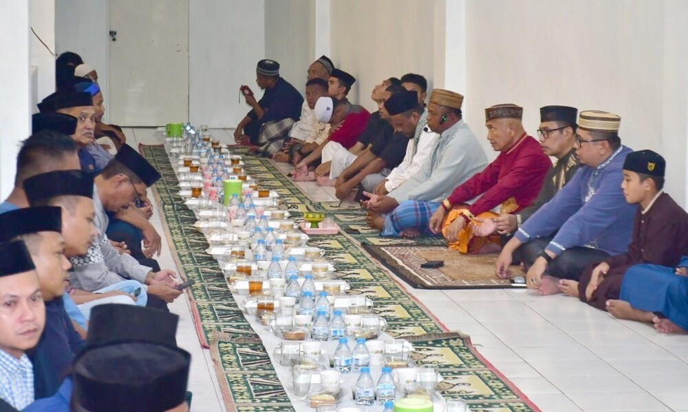 POHUWATO, CARAPANDANG - Bupati Pohuwato, Saipul A. Mbuinga bersama Ketua Tim Penggerak PKK Pohuwato, Selvi Mbuinga Monoarfa menyediakan menu buka puasa bersama di Masjid Baiturahman Kecamatan Paguat. Buka puasa bersama itu menjadi rutinan bagi Bupati Saipul dan Ketua TP. PKK Pohuwato saat Ramadan. Usai buka puasa dilanjutkan dengan salat magrib berjemaah, Sabtu, (16/03/2024).