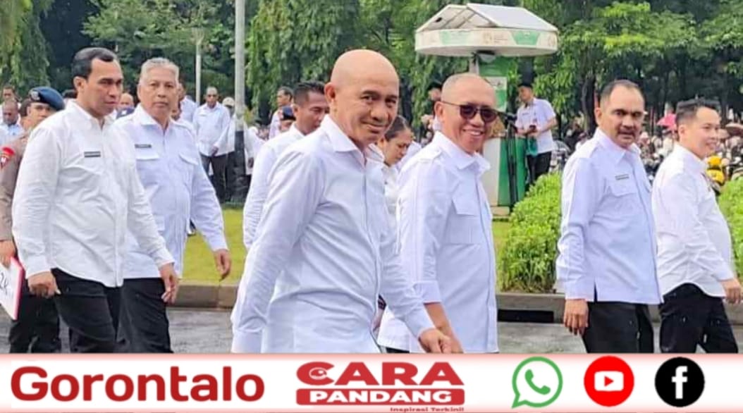 POHUWATO, CARAPANDANG - Bupati dan Wakil Bupati Pohuwato terpilih, Saipul A. Mbuinga, dan Iwan S. Adam, mengikuti gladi bersih jelang pelantikan kepala daerah dan wakil kepala daerah hasil Pemilukada 2024 di Istana Negara, Jakarta, Rabu, (19/02/2025).