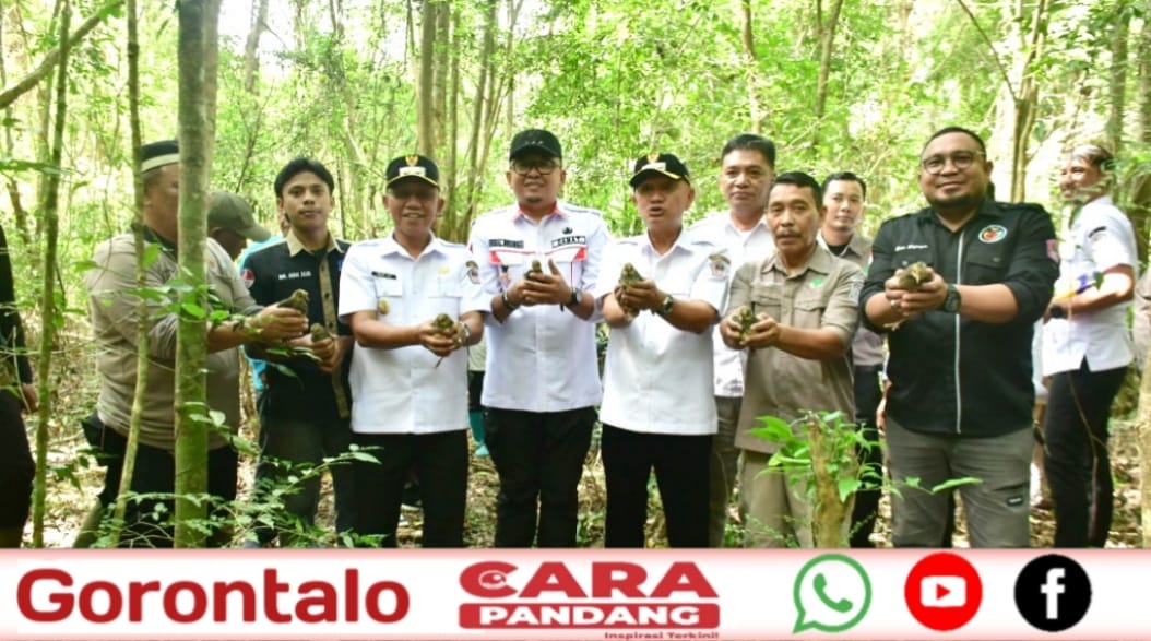 POHUWATO, CARAPANDANG - Dalam upaya menjaga kelestarian dan popularitas burung Maleo, Bupati Pohuwato, Saipul A. Mbuinga bersama Wakil Bupati, Iwan S. Adam, Kepala Seksi Konservasi Wilayah (SKW) II Gorontalo, Sjamsuddin Hadju, S.H, M.H, didampingi Camat Paguat, Ikbal Mbuinga, serta Tenaga Ahli Bupati melepas 10 ekor burung Maleo di kawasan hutan cagar alam atau yang lebih dikenal dengan sebutan jalan lurus cagar alam Desa Teratai, Kecamatan Marisa, Rabu (10/09/2025).
