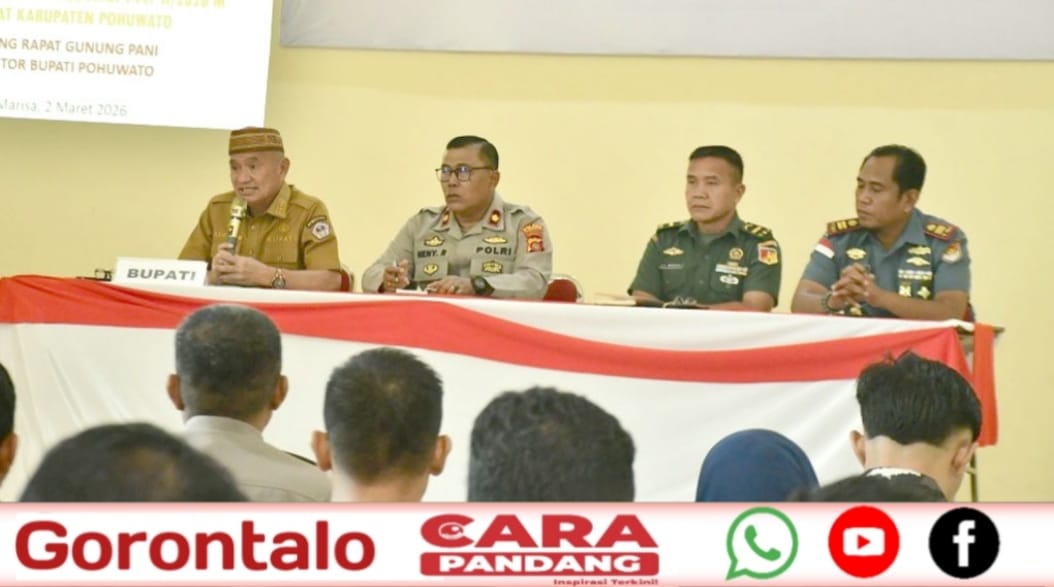Kegiatan yang berlangsung di Ruang Rapat Gunung Pani Kantor Bupati Pohuwato itu turut dihadiri Wakapolres Pohuwato, unsur Kodim 1313 Pohuwato, Kepala Pos Angkatan Laut, kepala pelabuhan barang dan pelabuhan laut, perwakilan Bandara Panua, para asisten, serta pimpinan OPD terkait.