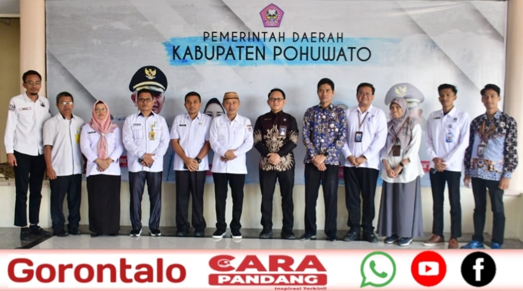 POHUWATO, CARAPANDANG - Bertempat di Rumah Jabatan, Bupati Pohuwato, Saipul A. Mbuinga, didampingi oleh Kepala Bapppeda Irfan Saleh, Inspektur Daerah, Muslimin Nento, dan Kepala BPKPD, Teti Alamri, menerima kunjungan dari Kepala Perwakilan BPKP Provinsi Gorontalo, Mohamad Riyanto, SE, AK, CFrA, CA, CGCAE.