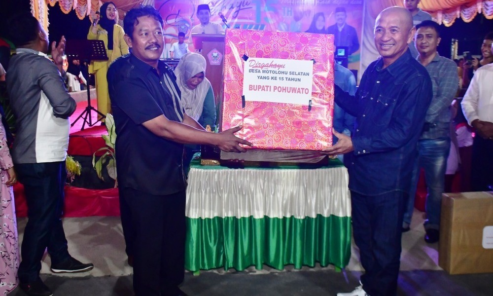 POHUWATO, CARAPANDANG.COM - Hadirnya sorga desa di apresiasi Bupati Pohuwato, Saipul A. Mbuinga di sela perayaan HUT ke-15 Desa Motolohu Selatan, Kecamatan Randangan, Rabu, (26/7/2023) malam.