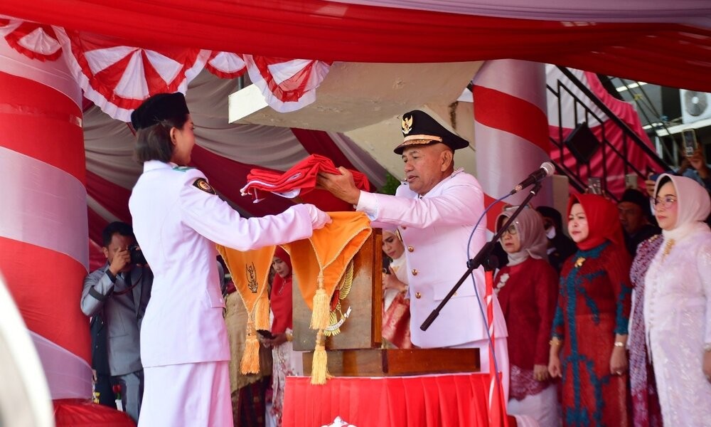 Tak lama berselang, Inspektur Upacara Bupati Saipul Mbuinga memimpin hening cipta untuk mengenang jasa para pahlawan kemerdekaan. Hening cipta diiring dengan lagu hymne oleh paduan suara Coy.