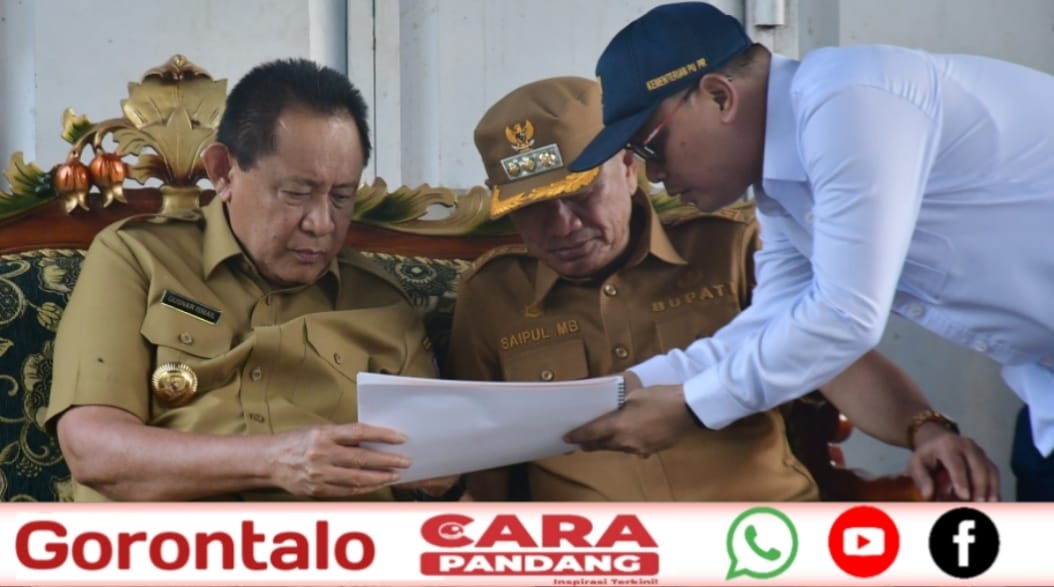 POHUWATO, CARAPANDANG - Bupati Pohuwato, Saipul A. Mbuinga, mendampingi Gubernur Gorontalo, Gusnar Ismail, dalam kunjungan kerja meninjau Bendungan Randangan, Selasa (24/06/2025).