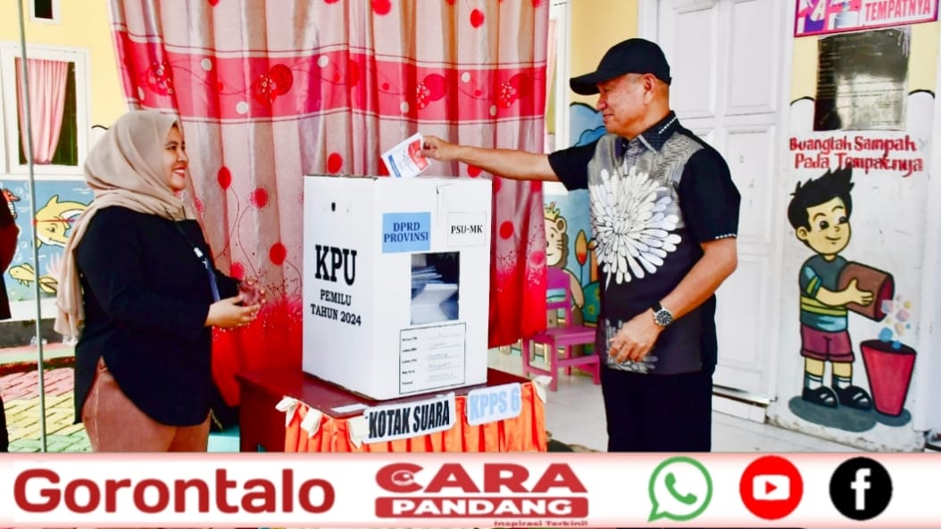POHUWATO, CARAPANDANG - Bupati Pohuwato, Saipul A. Mbuinga, bersama istri tercinta, Selvi Mbuinga Monoarfa, menyalurkan hak suara mereka pada Pemungutan Suara Ulang (PSU) Anggota DPRD Provinsi Gorontalo di Tempat Pemungutan Suara (TPS) 03, Desa Sipatana, Kecamatan Buntulia, Sabtu, (13/07/2024).