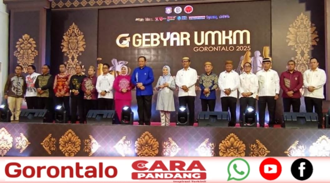 Opening Ceremony Gebyar UMKM Gorontalo 2025 dibuka Gubernur Gorontalo, Gusnar Ismail, dan dihadiri Wakil Gubernur, Idah Syahidah, pejabat tinggi Provinsi Gorontalo, pihan perbankan, dan para pelaku UMKM.