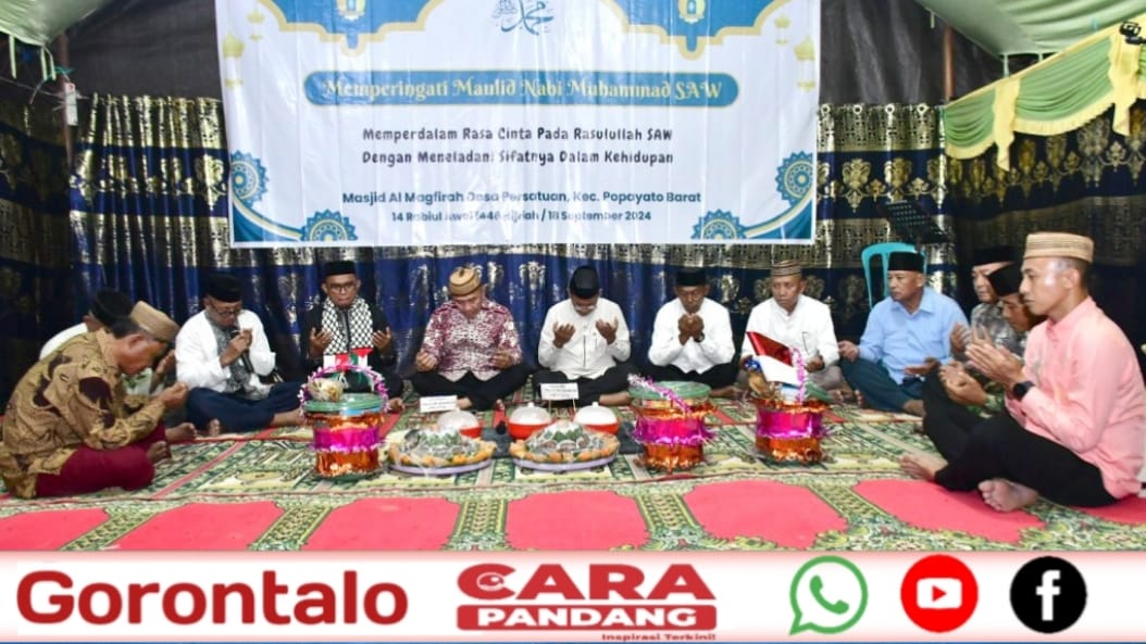 POHUWATO, CARAPANDANG - Bupati Pohuwato, Saipul A. Mbuinga, menghadiri perayaan Maulid Nabi Muhammad SAW 1446 H yang diselenggarakan oleh Molosipat Group. Acara ini diadakan dengan meriah di halaman Masjid Al Magfirah, Desa Persatuan, Kecamatan Popayato Barat, Sabtu, (21/09/2024) malam.