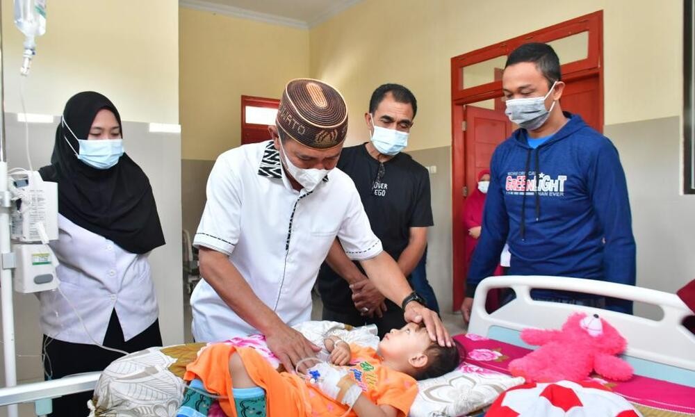 Dimulai dari ruang kelas I, kemudian ruang kelas II, ruang anak, ruang bedah, perawatan interna, menyambangi keluarga pasien isolasi hingga ruang UGD yang terdapat pasien semuanya dibesuk oleh Bupati Saipul Mbuinga, Rabu, (19/4/2023).