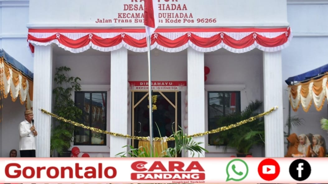 POHUWATO, CARAPANDANG - Bupati Pohuwato, Saipul A. Mbuinga, didampingi Plt. Camat Duhiadaa, Ibrahim Kiraman, unsur Dinas PMD, Kades Duhiadaa, meresmikan Kantor Desa Duhiadaa yang baru, Jum’at, (09/08/2024).