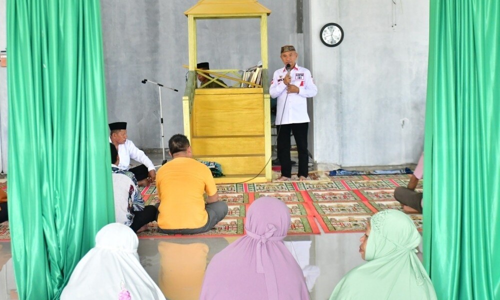 POHUWATO, CARAPANDANG.COM - Bupati Saipul A. Mbuinga melakukan salat Jum’at berjemaah di Masjid Besar Baiturrahim, Kecamatan Dengilo usai kegiatan gebyar SMS. Di Masjid itu, Bupati Saipul memberikan bantuan sebesar Rp10 Juta kepada takmirul masjid yang diterima Camat Dengilo, Nakir Ismail, Jum’at, (08/03/2024).