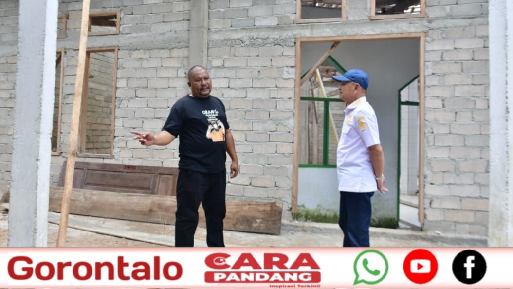 POHUWATO, CARAPANDANG. - Bupati Pohuwato, Saipul A. Mbuinga, meninjau langsung proses renovasi pembangunan Masjid Baitul Hikmah yang terletak di Desa Tahele, Kecamatan Popayato Timur, Rabu (11/09/2024).