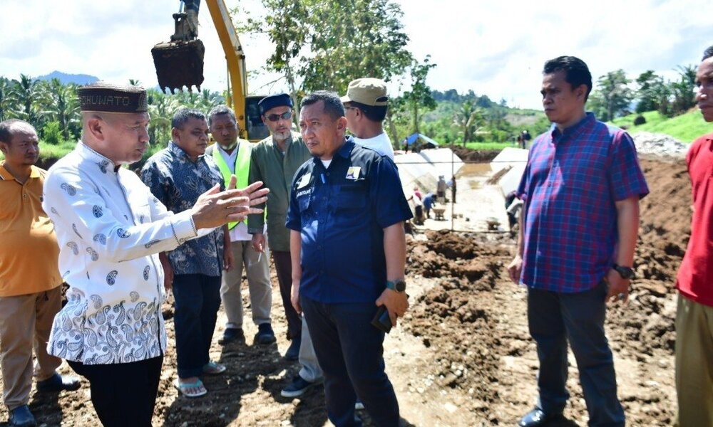 POHUWATO, CARAPANDANG.COM - Bupati Pohuwato, Saipul A. Mbuinga kembali meninjau pekerjaan Bendungan Taluditi yang berada di Desa Puncak Jaya, Jum’at, (01/12/2023).