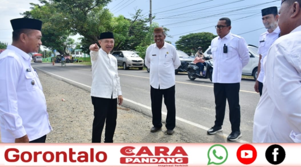 POHUWATO, CARAPANDANG - Pembangunan gapura dan pagar Masjid Besar Al-Munawwarah, Kecamatan Popayato, mendapat perhatian langsung dari Bupati Pohuwato, Saipul A. Mbuinga, yang meninjau lokasi pekerjaan tersebut pada Rabu (22/10/2025).