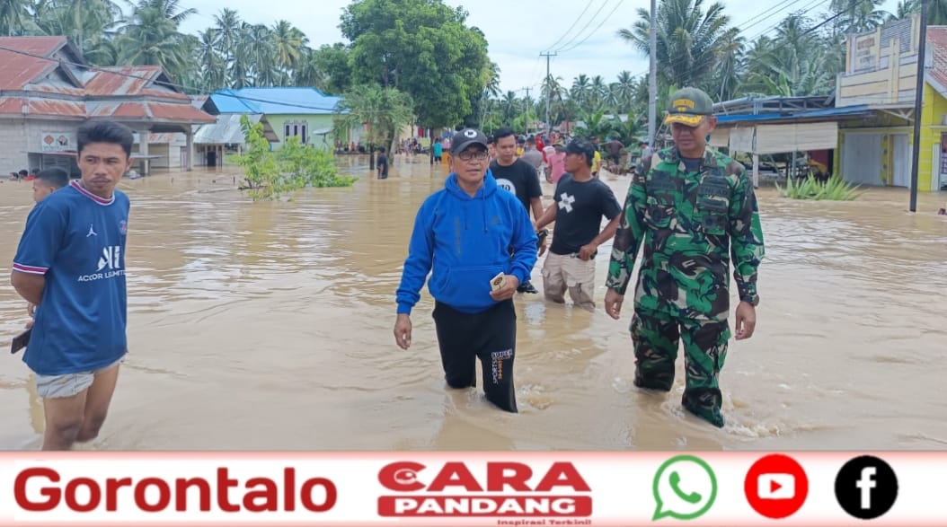 Dandim 1313/Pohuwato, Letkol Inf Madiyan Surya, langsung turun ke lokasi untuk memastikan bantuan segera diberikan kepada warga terdampak. Anggota Kodim 1313/Pohuwato, personel Polsek, serta aparat desa setempat bersama warga bergotong royong mengevakuasi korban banjir dan menyelamatkan barang-barang berharga.