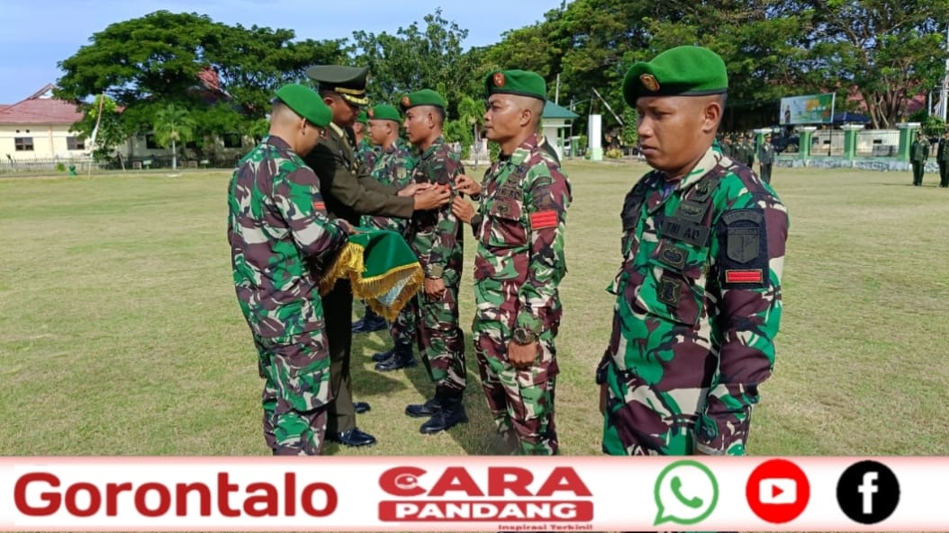 Komandan Kodim 1313/Pohuwato Letkol Inf Madiyan Surya, Hub. Int., M. Han, memimpin Upacara Wisuda Purna Tugas Bintara dan Korp Raport kenaikan pangkat Bintara dan Tamtama Prajurit Kodim 1313/Pohuwato