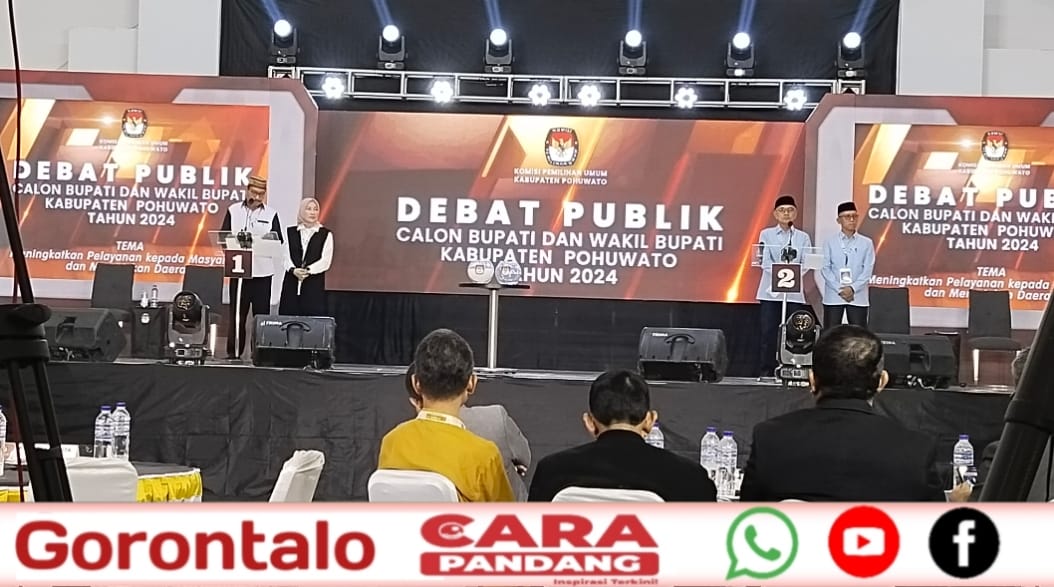 Debat ini berlangsung di Gedung Ichsan Convention Centre, Desa Palopo, Kecamatan Marisa, Sabtu (09/11/2024), dengan mengusung tema “Meningkatkan Pelayanan kepada Masyarakat dan Memajukan Daerah.