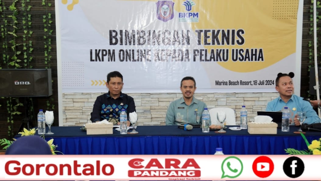 POHUWATO, CARAPANDANG - Bimbingan teknis (Bimtek) pelatihan tata cara pengisian laporan kegiatan penanaman modal (LKPM) secara online kepada pelaku usaha yang diselenggaran oleh Dinas PM-PTSP Provinsi Gorontalo, dibuka Sekretaris Daerah Pohuwato, Iskandar Datau, di Marina Beach Resort (MBR) Marisa, Kamis, (18/07/2024).